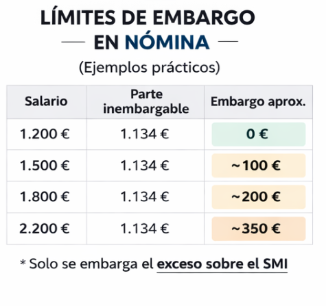 Aplicando tramos progresivos, el embargo puede rondar aproximadamente entre 200–400 €, no 1.000 € como muchos creen.